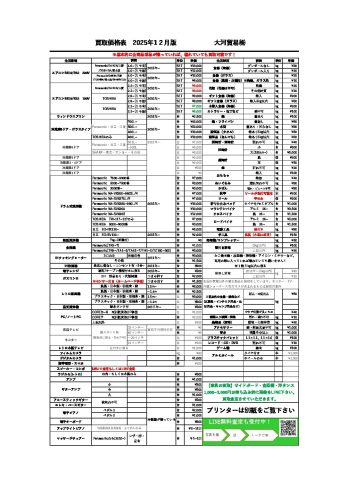 いつも大河貿易株式会社のホームページをご覧いただき、 ありがとうございます。 2025年1月の買取価格表を更新いたしました。 買取価格は12月と同様の内容となっております(年式は基本的に1年スライド) 買取 […]